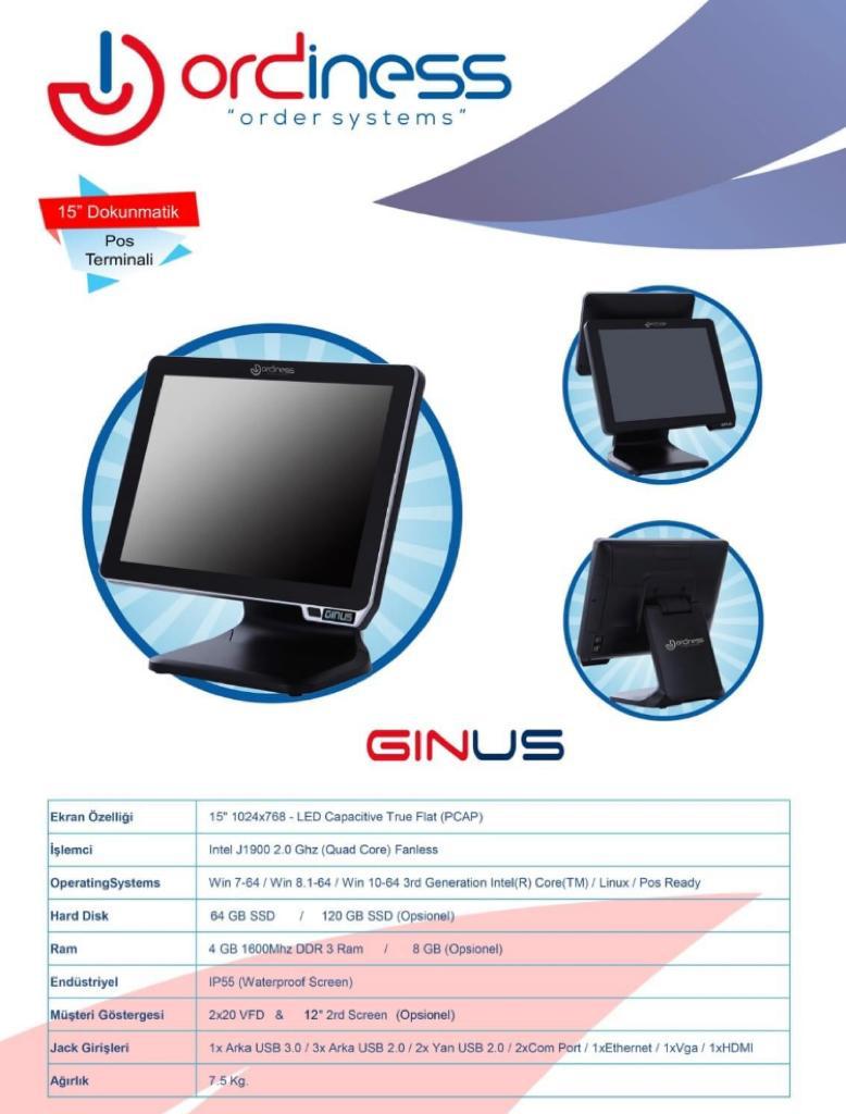 Ordiness Ginus 15'' Dokunmatik Pos Terminali (Siyah&Beyaz)