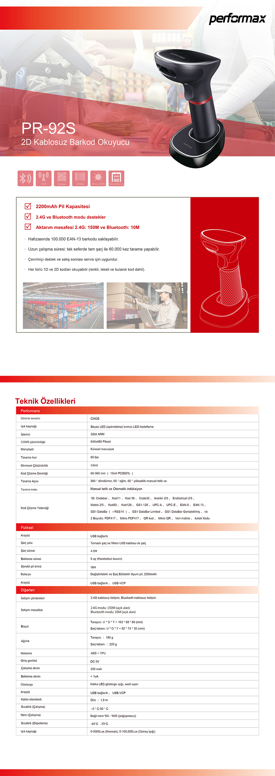 Performax Pr-92S 2D Kablosuz-Standlı Barkod Okuyucu