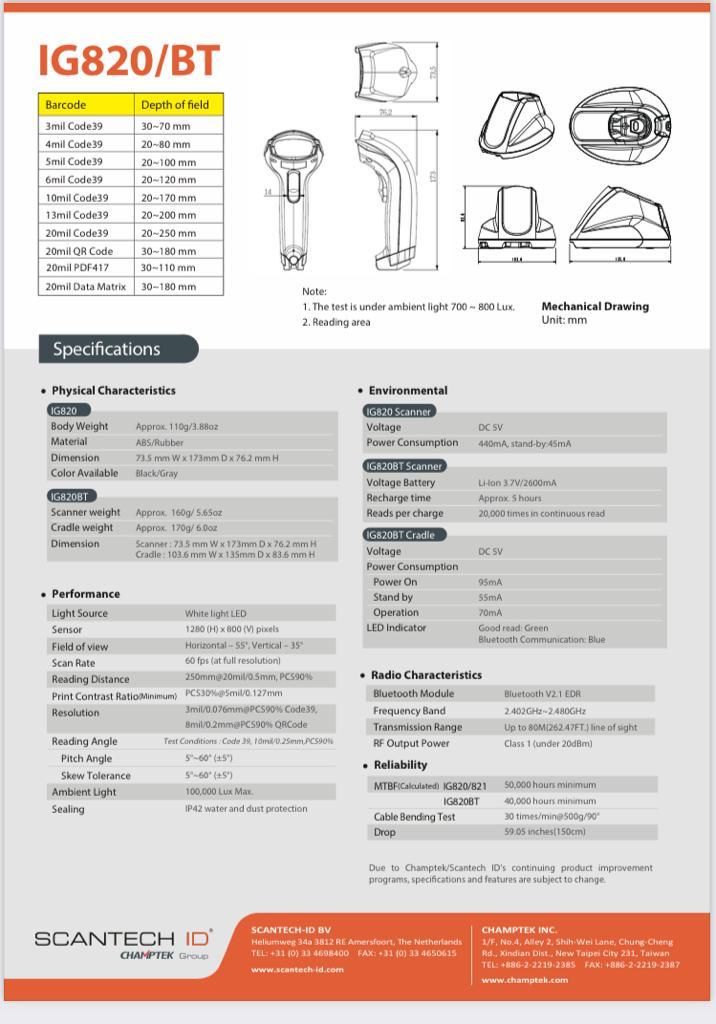 Scantech Cmt Ig820Bt 2D (Karekod) Kablosuz Barkod Okuyucu