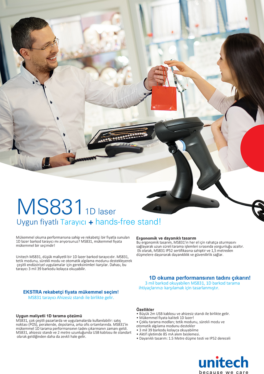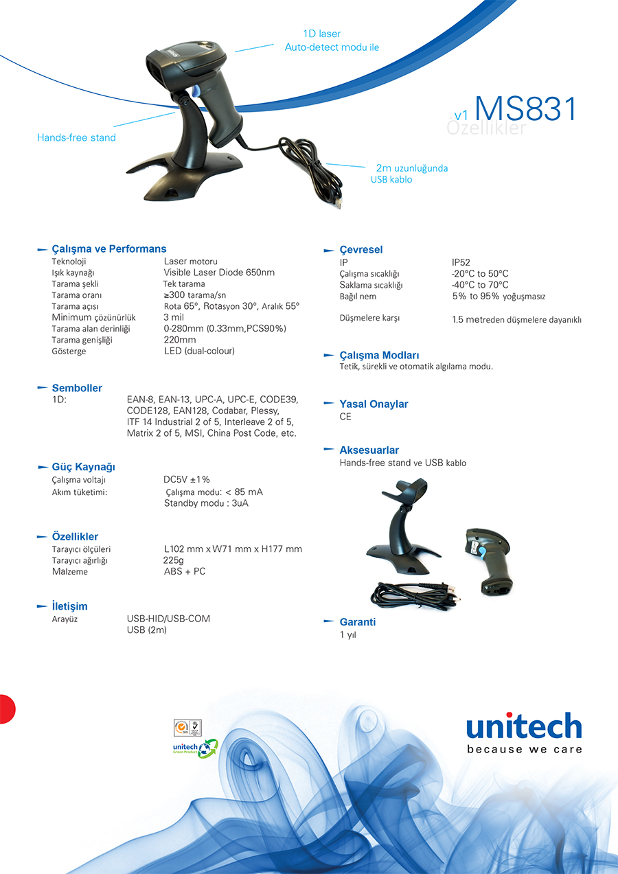 Unitech Ms831-Sucb00-Sg Barkod Scanner 1D Usb